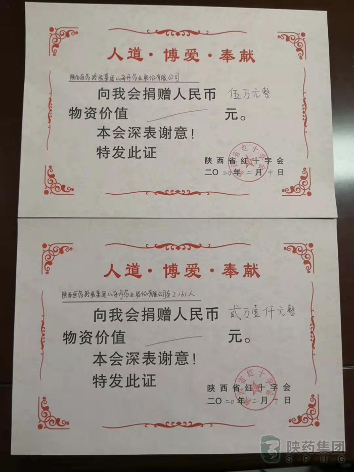 近期,一場(chǎng)突如其來(lái)的新型冠狀病毒肺炎疫情牽動(dòng)著全體山海丹人的心。災(zāi)難無(wú)情,公司有愛(ài),作為一個(gè)有責(zé)任、有擔(dān)當(dāng)、有愛(ài)心的企業(yè),陜西醫(yī)藥控股集團(tuán)山海丹藥業(yè)股份有限責(zé)任公司黨委向全體員工發(fā)出了捐款倡議書(shū),全員上下積極響應(yīng),踴躍捐款。2月10日,公司將161名員工的愛(ài)心捐款21000元以及公司捐助的50000元經(jīng)由陜西省紅十字會(huì)平臺(tái)定向捐贈(zèng)給陜西省新冠病毒防控指定醫(yī)院,用于購(gòu)買醫(yī)護(hù)人員所需防疫物資,陜西省紅十字會(huì)對(duì)于公司義舉給予了充分肯定。